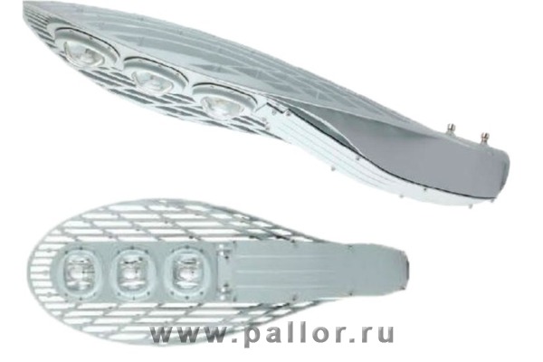 Светильник светодиодный уличный. Предназначен для установки на Г-образных кронштейнах опор на высоте 4-9 м. Диаметр трубы оголовника 48-60 мм. Консольный способ установки.