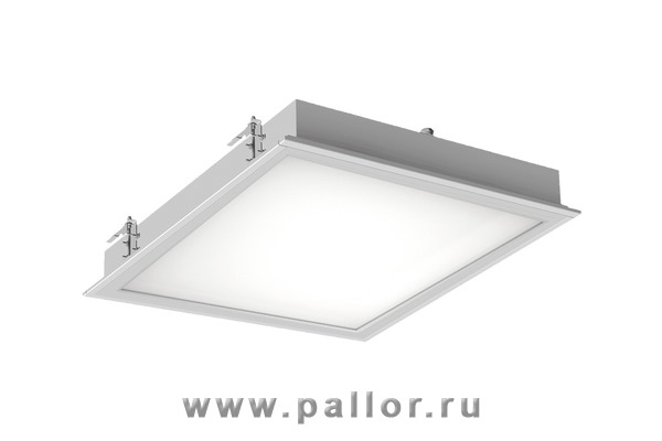 Светильник встраиваемый, предназначен для установки в кассетный потолок типа Clip-in (специальный потолок для помещений медицинского назначения с высокими гигиеническими требованиями), а также в гипсокартонный потолок.