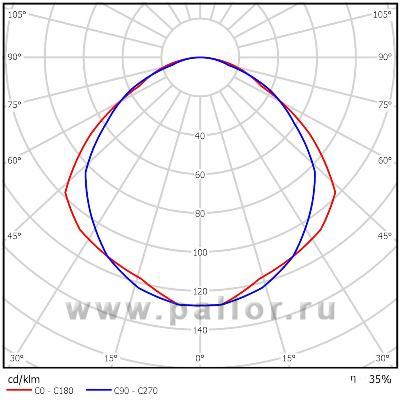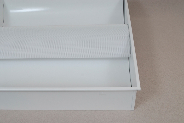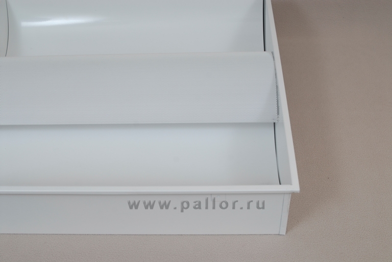 Оптическая часть - белый перфорированный рассеиватель со светотехнической пленкой и боковые параболические отражатели, покрытые белой матовой краской.