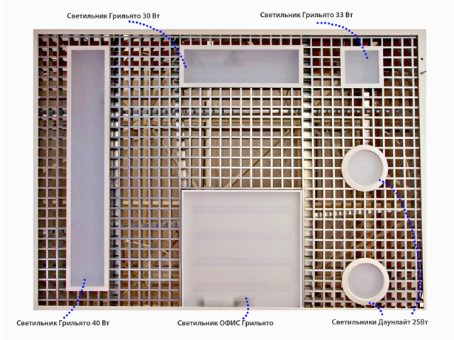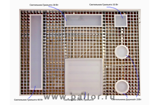 Встраиваемый светодиодный светильник. Устанавливается в потолки типа Грильято (50х50 мм, 100х100 мм, 200х200 мм). При помощи специальных креплений возможна Установка в подвесные потолки из гипсокартона.