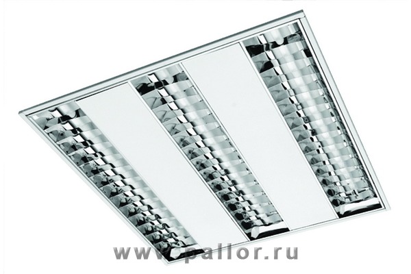 Оптическая система - зеркальный растровый отражатель имеет форму двойной параболы, параболические поперечные отражатели закрыты с обратной стороны, между отражателями растра - белые перфорированные вставки.