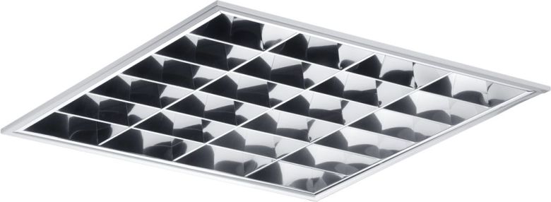 Бипараболическая решетка изготовлена из матового алюминия в алюминиевой рамке. Устанавливается в корпус скрытыми пружинами.