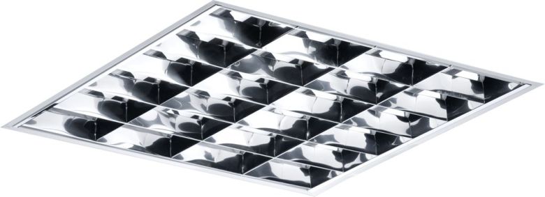 Оптическая часть: зеркальная решетка в виде двойной параболы, изготовлена из анодированного алюминия Alanod. Закреплена в корпусе скрытыми пружинами.