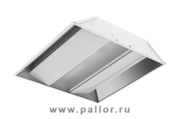 Оптическая часть - рассеиватель "Колотый лёд" и глянцевые перфорированные алюминиевые панели для максимально комфортного светораспределения.