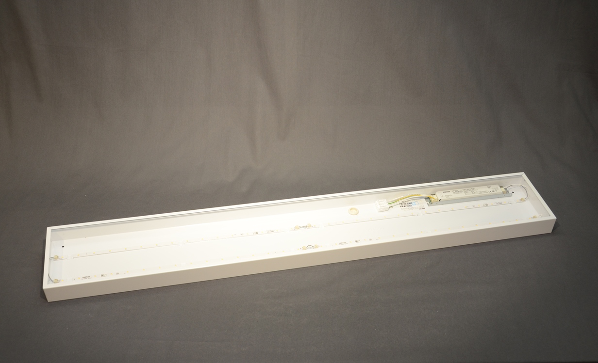 Цельнометаллический корпус из листовой стали, окрашенной белой порошковой краской. IP20. Под заказ возможно изготовление светильника в исполнении IP40.