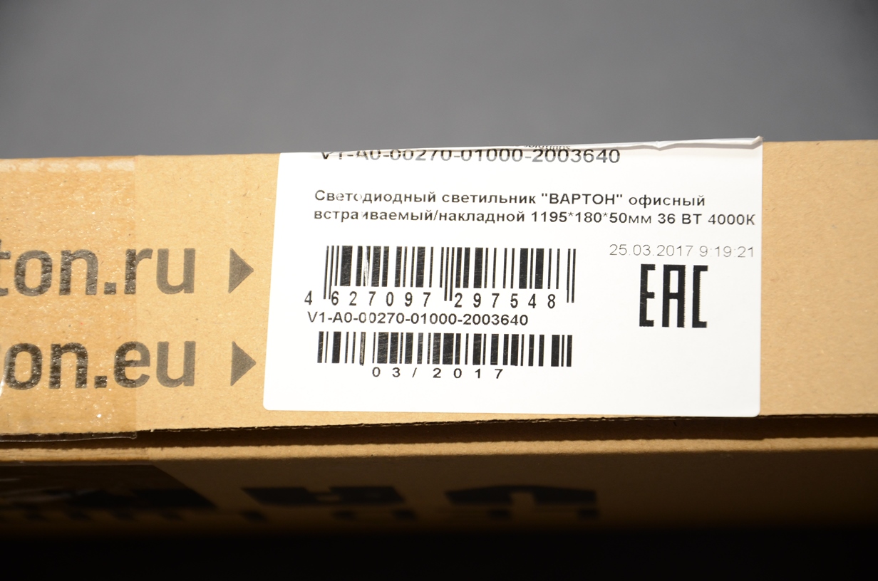 Производитель Вартон (VARTON) Светильники для потолков Армстронг, Светодиодные светильникиДоступны 13 модификаций (36 - 36 Вт)